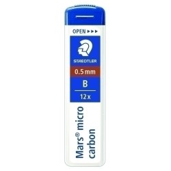 Minas para portaminas, para usar sobre papel y cartulina. Alta resistencia a la rotura debido a su gran flexibilidad. Trazos fluidos, de color negro intenso. Proceso de fabricación ecológico único, sin PVC ni agentes suavizantes. Más del 90% procedente de materiales naturales. Adecuadas para usar con todos los portaminas. Recarga “12 a la vez” para la mayoría de portaminas STAEDTLER. Codificación de color ISO.